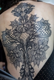 背部惊人的黑白蕾丝纹身图案