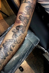 大臂惊人的结合黑白小鸟和数字纹身图案