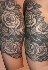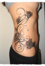 腰部黑白美丽的玫瑰藤蔓纹身图案