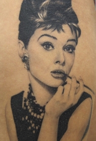 写实黑白美丽的奥黛丽赫本肖像大腿纹身图案