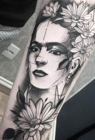 手臂黑白前臂肖像纹身图案