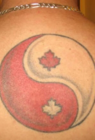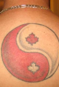 肩部红白圆阴阳八卦枫叶纹身图片