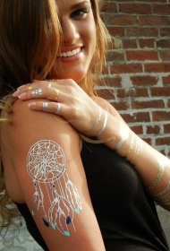 白色墨水风格的捕梦网肩膀纹身图案