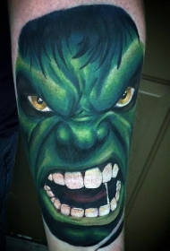 腿部彩色凶恶的绿巨人纹身图案