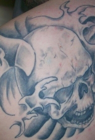 肩部黑灰可怕的哭泣骷髅头纹身图案