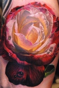 腿部逼真的彩色大玫瑰纹身图案