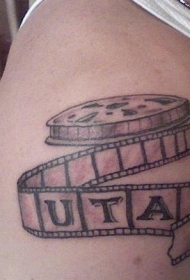肩膀上的UTA黑白电影胶片纹身图案
