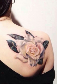 肩部逼真写实的白玫瑰纹身图案