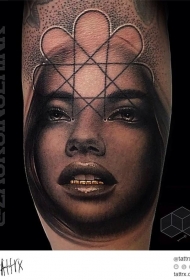 个性写实的雕式黑白女性肖像纹身图案