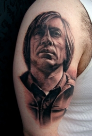 大臂男子肖像黑白纹身图案