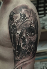 大臂惊人的黑白人类骷髅纹身图案