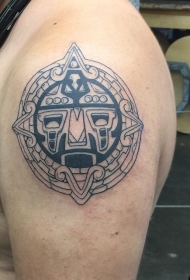 肩部黑白圆形古代石碑纹身图案