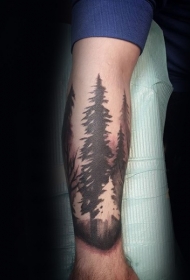 小臂黑白个性的树林纹身图案
