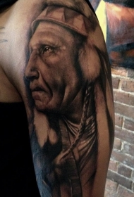 大臂写实风格的黑白老印第安人纹身图案