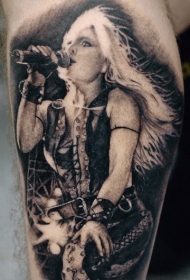 黑白女歌手肖像大臂纹身图案