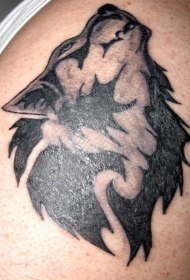 黑白雕刻风格咆哮狼乌鸦纹身图案
