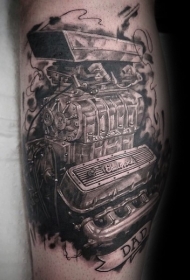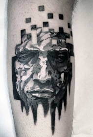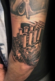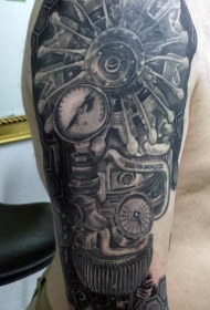手臂黑白鲨鱼头和海盗帆船纹身图案