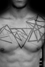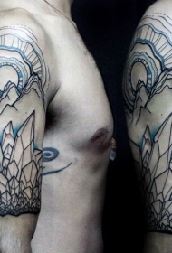 男性手臂黑色和蓝色线条山脉和晶体纹身图案