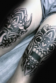 膝盖传统风格黑色点刺玫瑰纹身图案