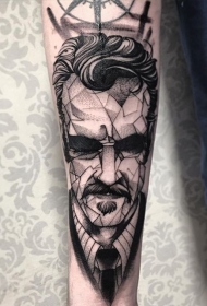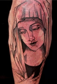 雕刻风格黑色线条圣母玛利亚纹身图案