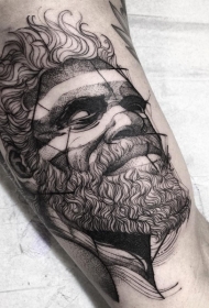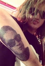 手臂女人肖像结合蝴蝶黑色线条纹身图案