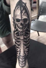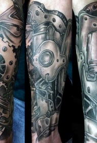 手臂写实黑色辐射标志与防毒面具纹身图案