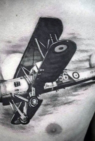 胸部写实风格的滑稽的战斗机黑白纹身图案