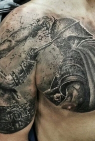 半甲黑灰古代战士血淋淋的战斗纹身图案