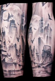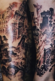 手臂写实逼真的黑白美国帝国大厦纹身图案