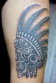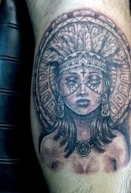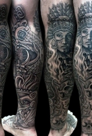 小腿黑白难以置信的玛雅部落妇女和雕塑纹身图案