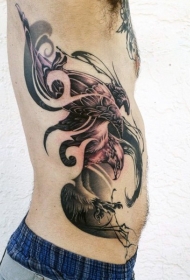 侧肋飞鹰黑白个性纹身图案