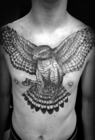 奇妙的写实黑白飞行鹰胸部纹身图案