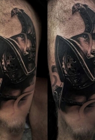 大腿写实风格黑灰角斗士头盔纹身图案