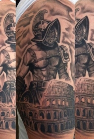 大臂黑白罗马竞技场的老斗士纹身图案