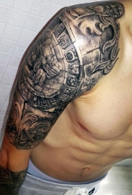 大臂古代黑白雕塑纹身图案