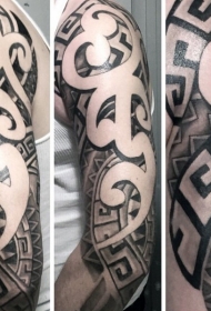 大臂黑色线条波利尼西亚风格饰品纹身图案
