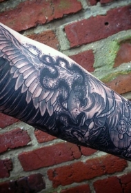 小臂印度风格黑白鹰纹身图案