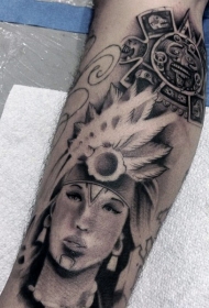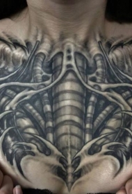 胸部非常个性的黑白部落战士和羽毛纹身图案