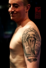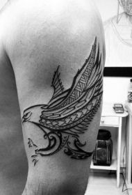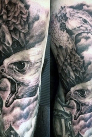 肩部罕见的逼真黑灰骷髅与鹰头纹身图案