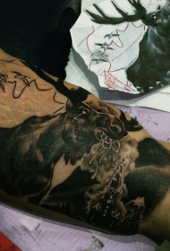 大臂令人毛骨悚然的黑白神秘麋鹿纹身图案