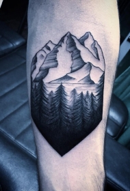 雕刻风格黑白神秘猫与三角形小腿纹身图案
