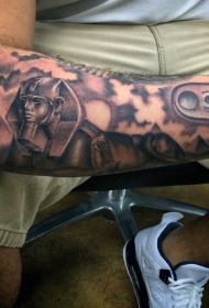 小臂神奇的黑白埃及狮身人面像和金字塔纹身图案