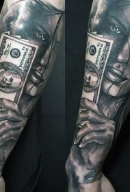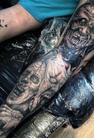 现代恐怖风格黑白怪物幽灵小臂纹身图案