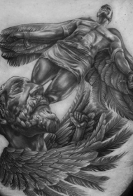 腹部黑色伊卡洛斯和代达罗斯肖像纹身图案