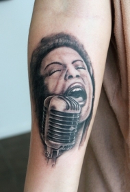 女生手臂黑灰点刺法蒂玛之手纹身图案