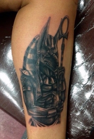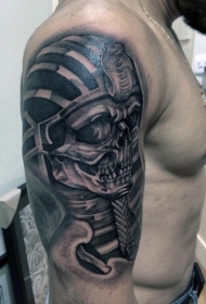 手臂黑白令人毛骨悚然的埃及骷髅纹身图案