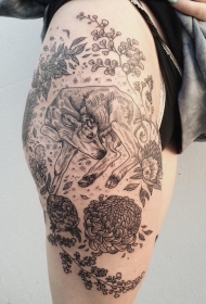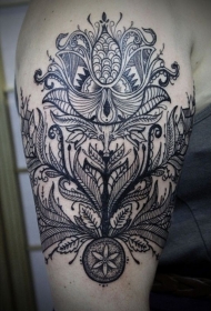 大臂不寻常的设计黑白花卉饰品纹身图案