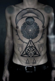 胸部和手臂巨大的黑白几何装饰纹身图案