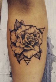 手臂old school黑白玫瑰与三角形纹身图案
