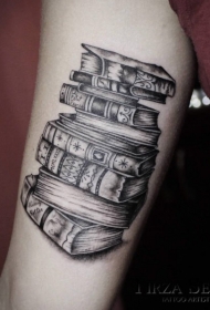 大臂黑灰古老的书籍纹身图案